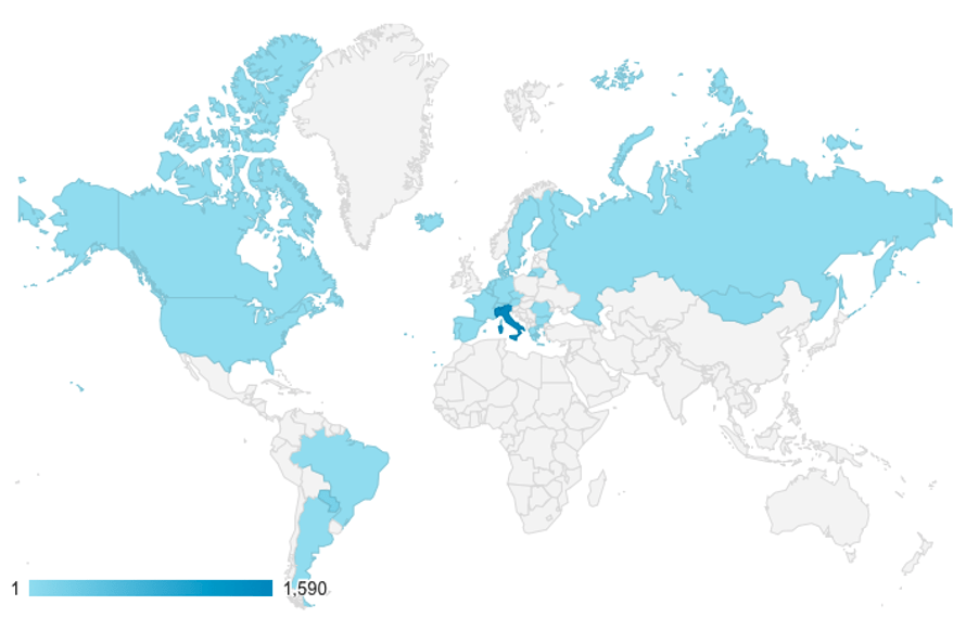 Map of countries from which users participated in the first hours of deployment of the survey (From Google Analytics)