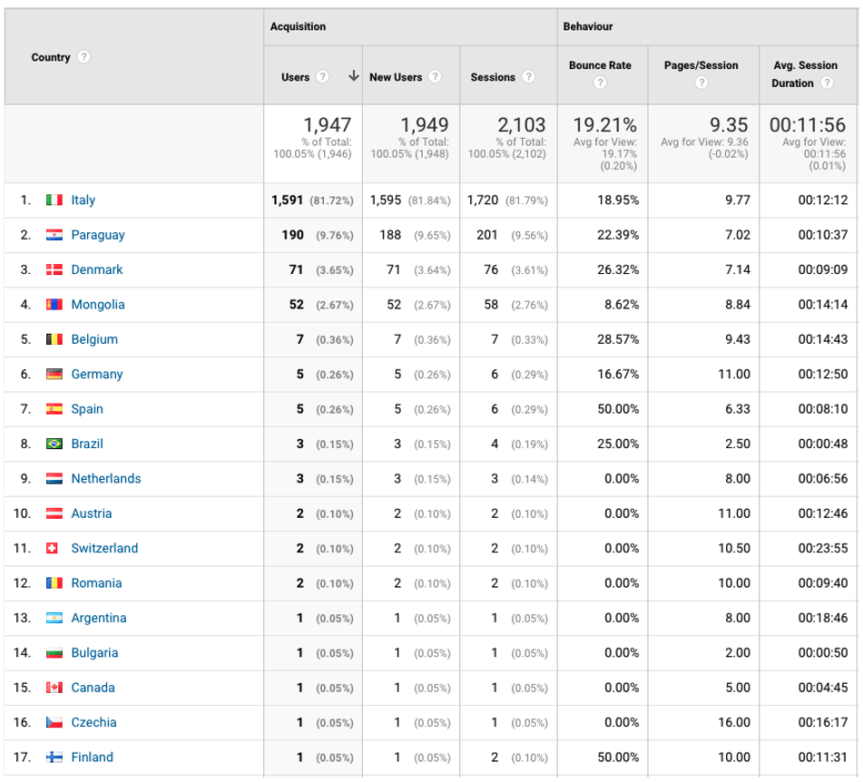 Peak of participation within the first day of deployment (Top) and numbers by country (From Google Analytics)
