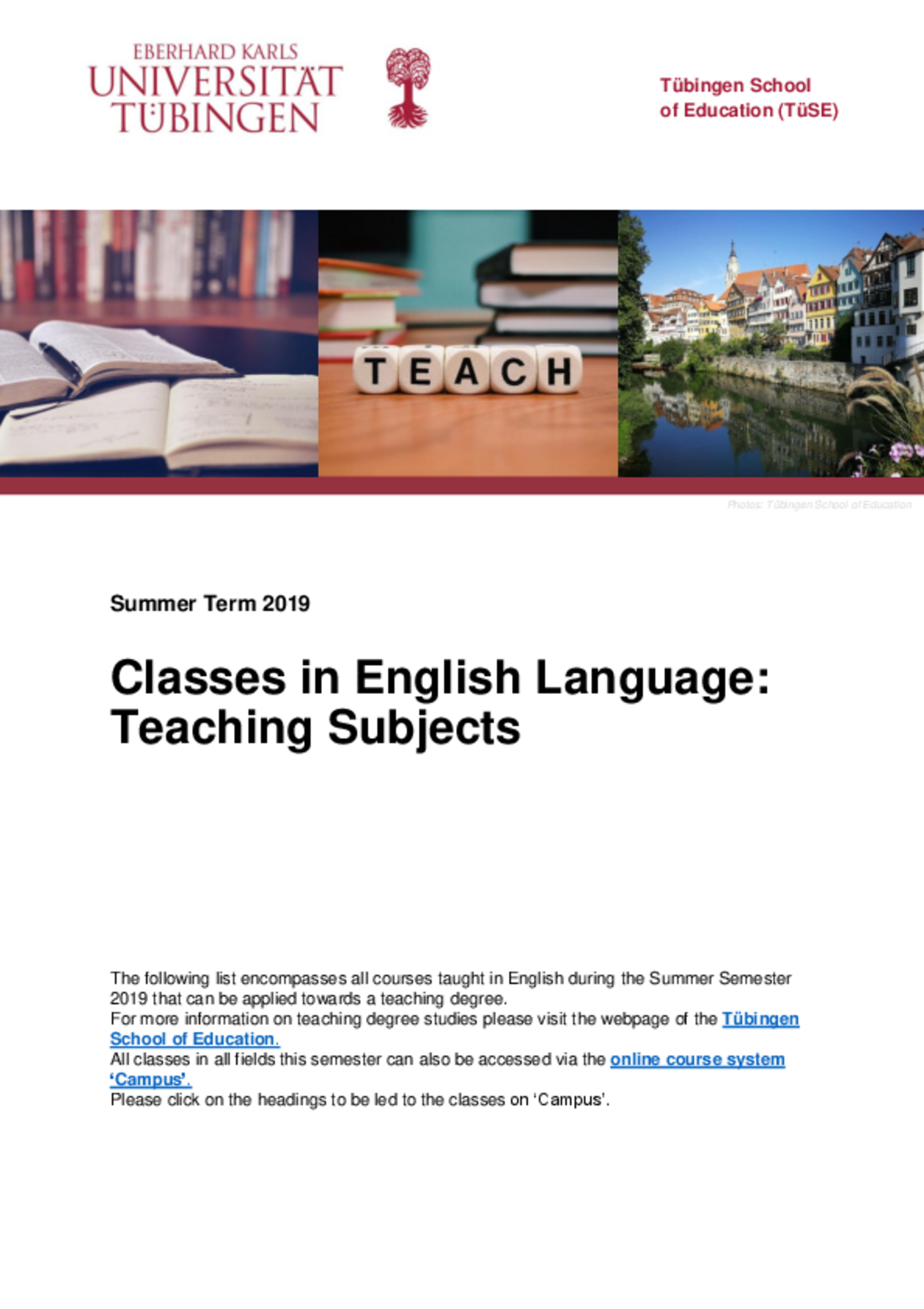 Find here a list of classes in Summer Semester 2019 which are eligible for teacher candidates or which cover subject specifications and related fields.