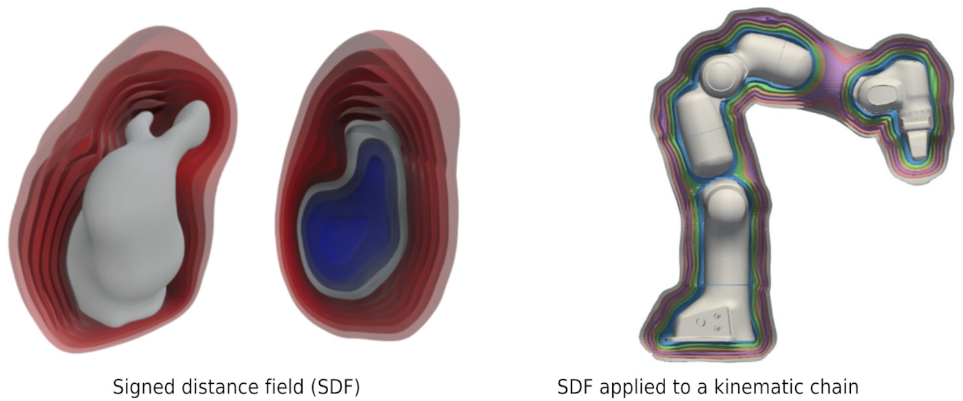 Signed distance fields (SDFs) are popular implicit shape representations in robotics. Most often, SDFs are used to represent rigid objects. However, they can also be used to represent general kinematic chains, such as articulated objects, robots, or humans. SDFs provide a continuous and differentiable representation that can easily be combined with learning, control, and optimization techniques. This project aims to explore the SDF representation of the human body based on state-of-the-art detection, tracking, and skeleton extraction techniques. The developed SDF representation can be used for human-robot interaction or transferring manipulation skills from humans to robots.