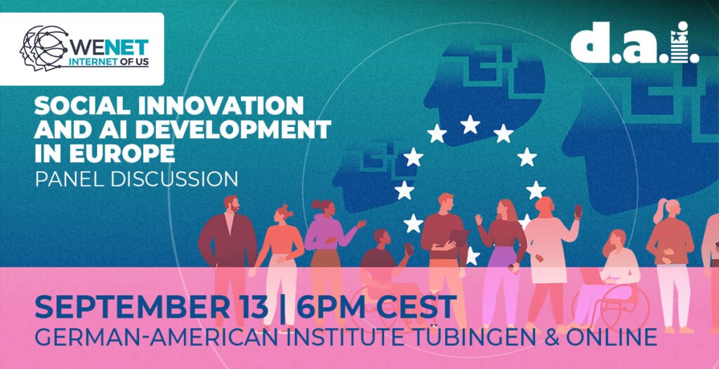 On 13 September 2022, WeNet is going to hold a hybrid panel discussion on “Social Innovation and AI development in Europe”, featuring international guests, either in person or connected remotely. The event will take place at the German-American Institute Tübingen (Germany) but remote attendance is also welcome.