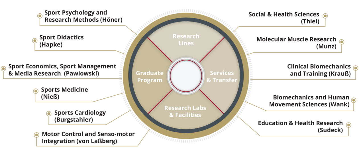 Core facilities are the Institute of Sports Science of the Faculty of Economics and Social Sciences and the Department of Sports Medicine of the Medical Faculty. By bundling their capacities, a powerful and internationally visible research and service profile is created.