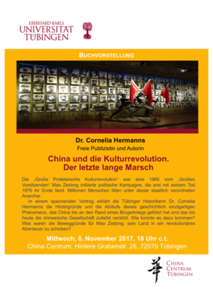 Tübingen District Administrator, Joachim Walter, and the Director of the China Centre Tübingen, Prof. Dr. Helwig Schmid-Glintzer, will open the event. Minister Claudia Stuhrmann (Ministry of Education, Youth and Sport), Embassy Counsellor, Dr. Liu Lixin (Head of the Department of Education of the People’s Republic of China), president of the Chamber of Industry and Commerce, Christian O. Erbe, as well as entrepreneur and founder of CCT Professsor h.c. Karl Schlecht will also be participating.