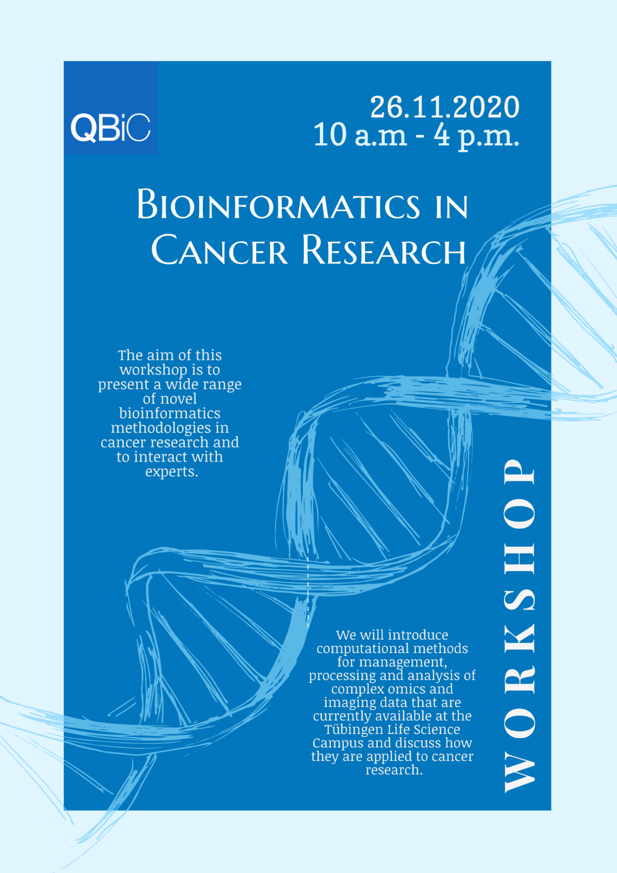 The workshop will take place on April 11th/12th, 2019 in the premises of QBiC at the Tübingen University Hospital.