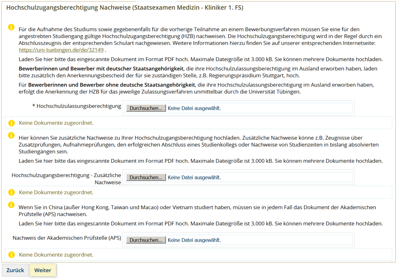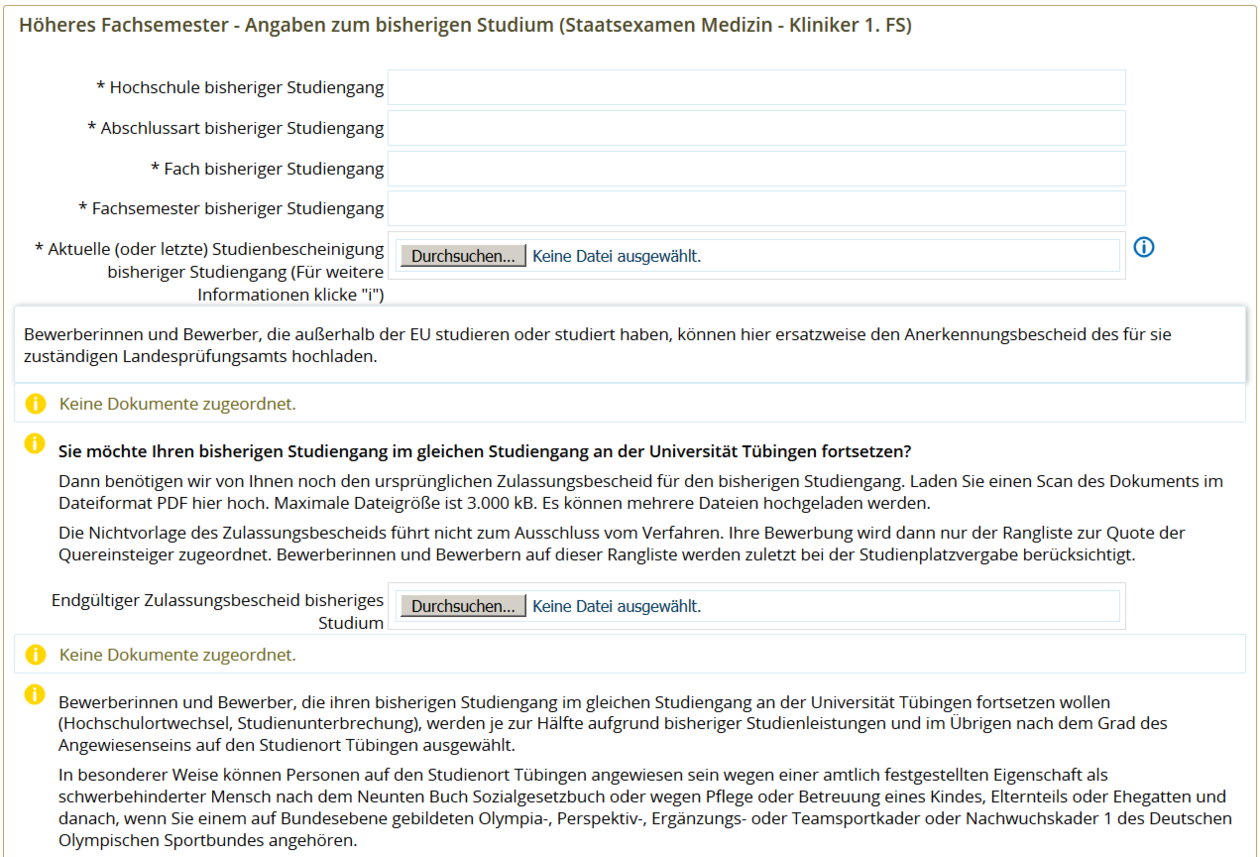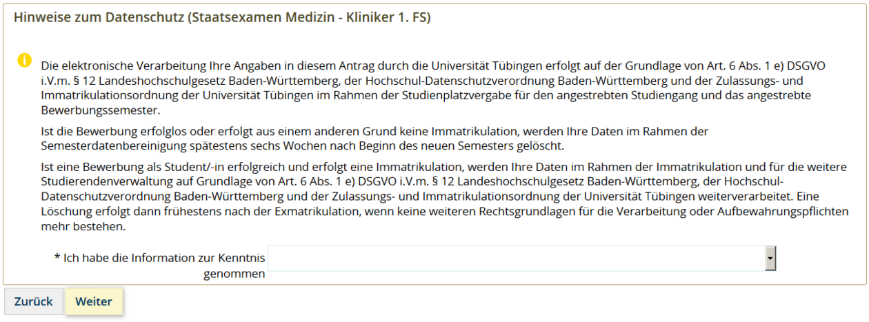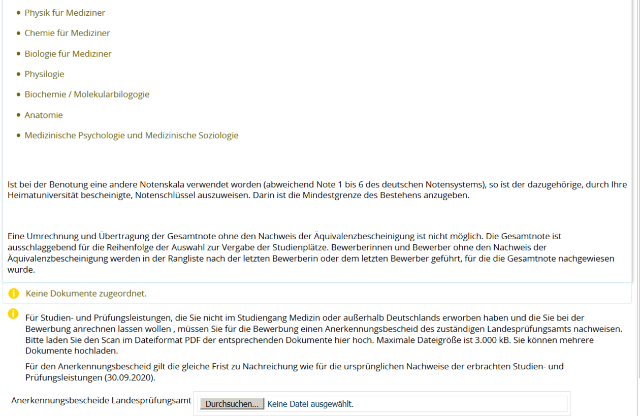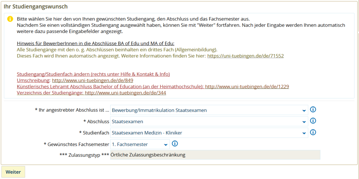 Hier erhalten Sie eine exemplarische Vorschau des Alma Portals für die Bewerbung eines deutschen Staatsangehörigen in das 1. klinische Fachsemester Medizin zum Wintersemester.