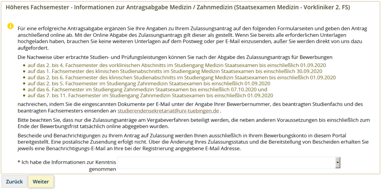 Wenn Sie Leistungsnachweise für die Bewerbung in das höhere Fachsemester nachreichen müssen, sind Sie an die Nachreichefrist für höhere Fachsemester gebunden (https://uni-tuebingen.de/de/2053). Innerhalb dieser Frist können Sie Ihre Leistungen als Scan per E-Mail an studierendensekretariatspam prevention@zv.uni-tuebingen.de unter Angabe Ihrer Bewerbernummer, Ihres beantragten Studienfachs und des beantragten Fachsemesters nachreichen.