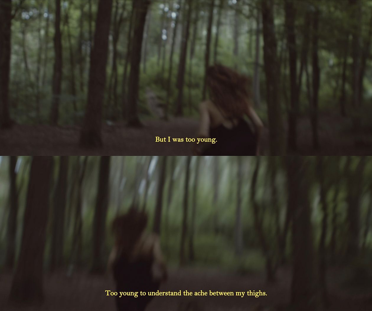 Ihr Film ist nur fünf Minuten lang und dennoch sehr eindrücklich und bewegend, auch durch den Text der Protagonistin, den man gleichzeitig lesen und hören kann. Sprechen wir über die Bildsprache des Films, über die Natursymbolik…
