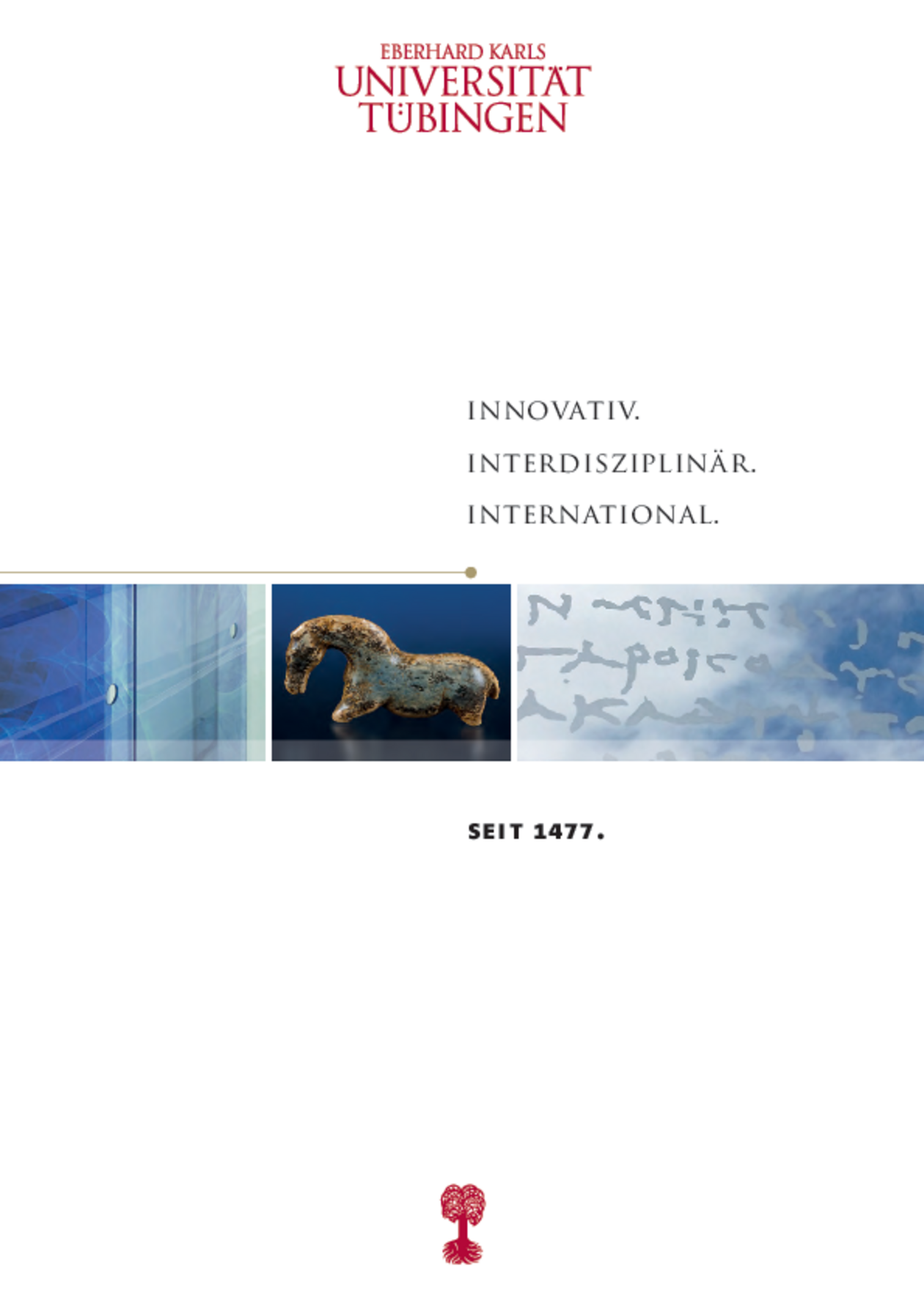 The Image broschure “Innovative. Interdisciplinary. International.” introduces Tübingen. Individual aspects include research, teaching, internationalization, knowledge transfer, and living in Tübingen.
